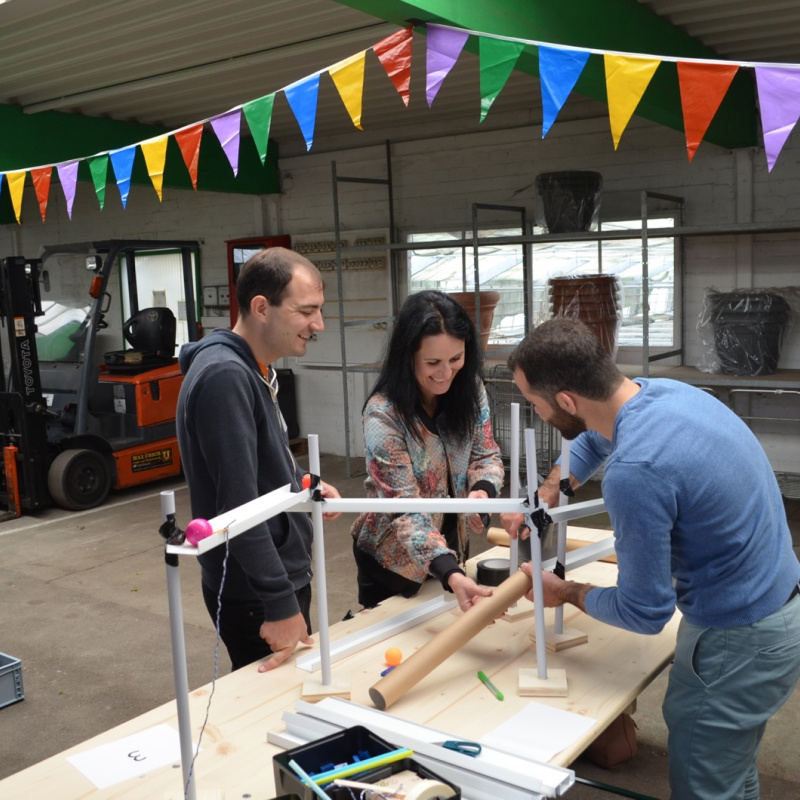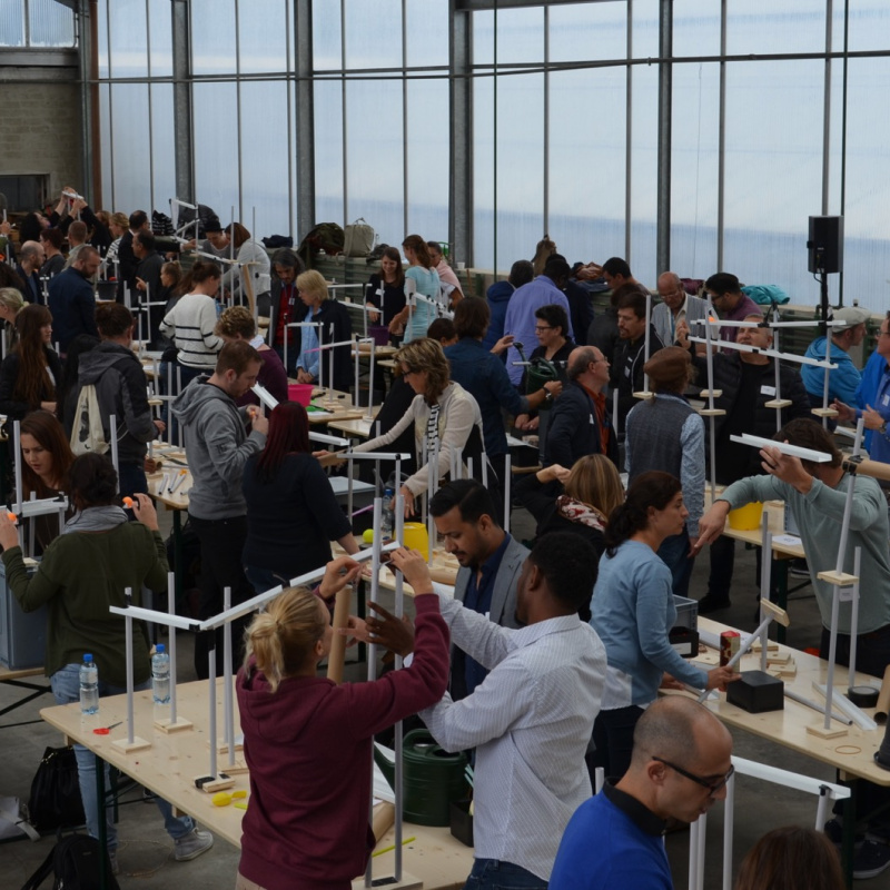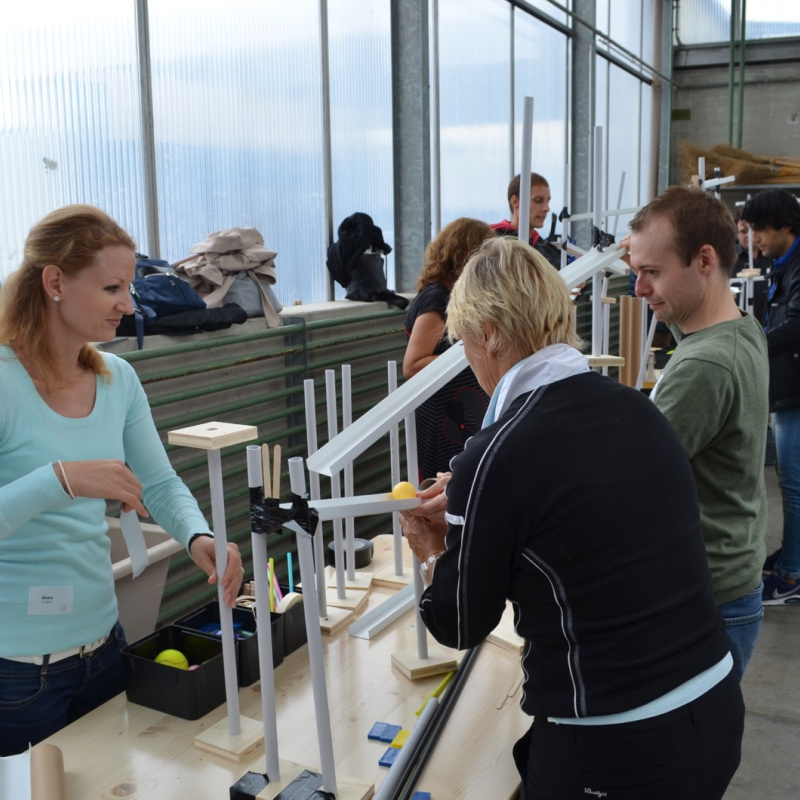 Die Kugel rollt und rollt und rollt. Aus einfachen Materialien bauen Teams à 4 Personen einen Abschnitt der Kugelbahn. Anschliessend werden mit den angrenzenden Gruppen die Schnittstellen gebaut. So entsteht aus vielen Einzelteilen ein grosses Ganzes. Die riesige Kugelbahn wird bei grösseren Gruppen über 100 Meter lang! Alle Gruppen erhalten eine identische Materialkiste. Kaum zu glauben, wie unterschiedlich die einzelnen Abschnitte der am Ende aussehen. Der Kreativität sind dabei keine Grenzen gesetzt. Der Kugelbahnworkshop eignet sich auch als Teamevent für Grossgruppen. Begeisterung ist garantiert.